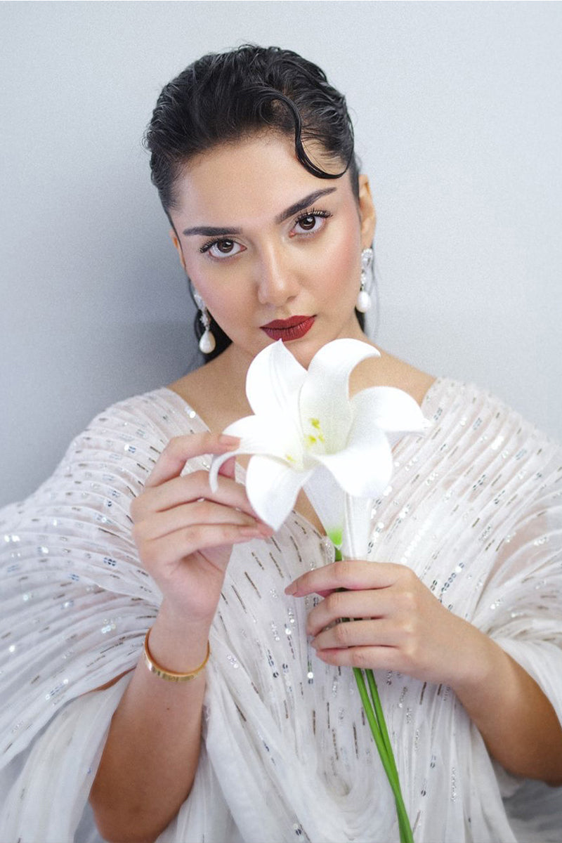 Indulge in the allure of timeless elegance with our meticulously crafted dress, fashioned from luxurious Korean raw silk. Embrace sophistication with its sleeveless silhouette, adorned with delicate handcrafted embellishments cascading gracefully along the sides. Our signature cape, meticulously adorned with over a thousand hand-stitched stones, adds an enchanting allure to this piece. What sets this garment apart are the signature strings of the cape, thoughtfully crafted from recyclable materials, embodying our commitment to environmental sustainability. Each stitch, each detail, speaks volumes of our dedication to creating a unique, eco-conscious masterpiece that epitomizes the essence of ARE's expression.